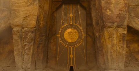 The rest of the group decide they can’t leave Kit and Elora and follow them down the waterfall. A sandstorm hits and Boorman turns into stone.
